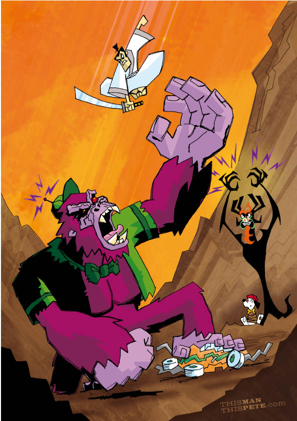 And Great Grape Ape? Although I am a fan and remember watching his series and his appearances in The Laff-alympics, I will admit I really chose him so I could draw Samurai Jack fighting a giant gorilla! If in doubt, draw a gorilla!!